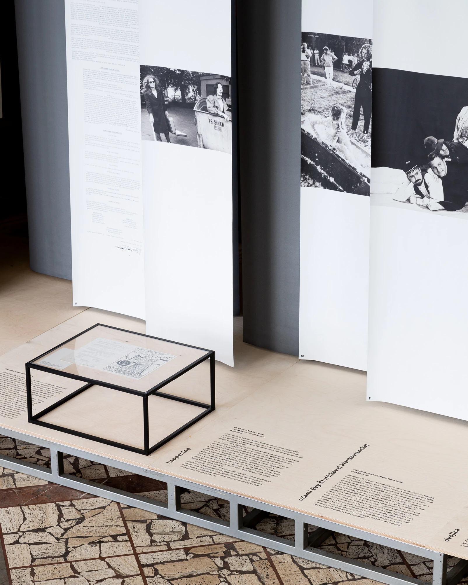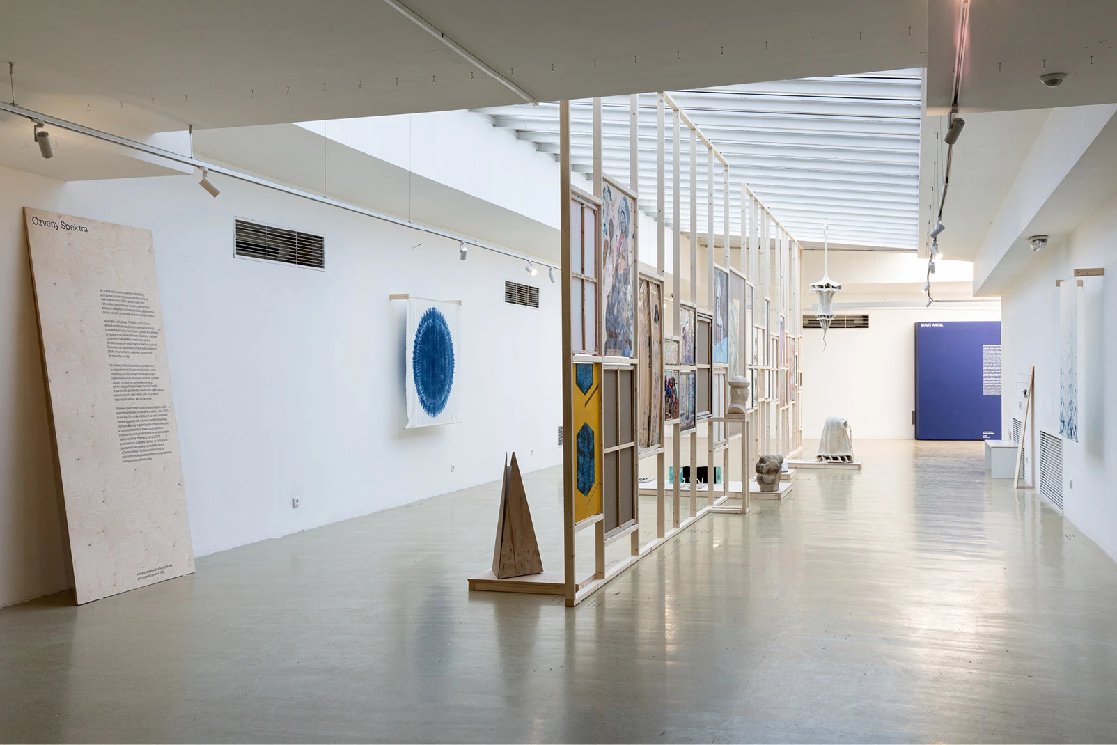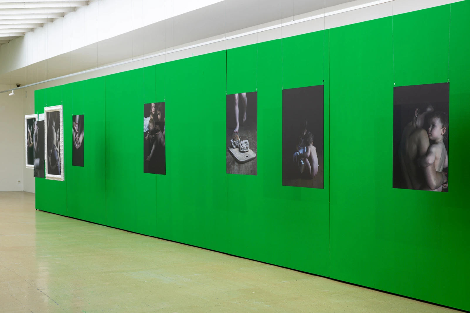 Výstavnú architektúru definuje výrazná zelená farba ktorá sa objavuje v rôznych materiáloch ako povrch stien textilné panely alebo papier a vytvára kontrastné pozadie k prevažne chromatickým dielam. Prvá časť výstavy pracuje s textilnými stenami medzi ktorými sú voľne inštalované objekty zavesené alebo položené. Nasleduje sekcia s radom panelov zoradených za sebou pričom každý ukrýva inú formu prezentácie ako je lupa zrkadlo malý detail alebo veľká fotografia. Posledná časť je definovaná stenou pred ktorou sú predsadené fotografie. Grafika výstavy využíva rovnakú zelenú a pomocou bieleho rastra a šumu vizuálne zjednocuje jednotlivé diela.