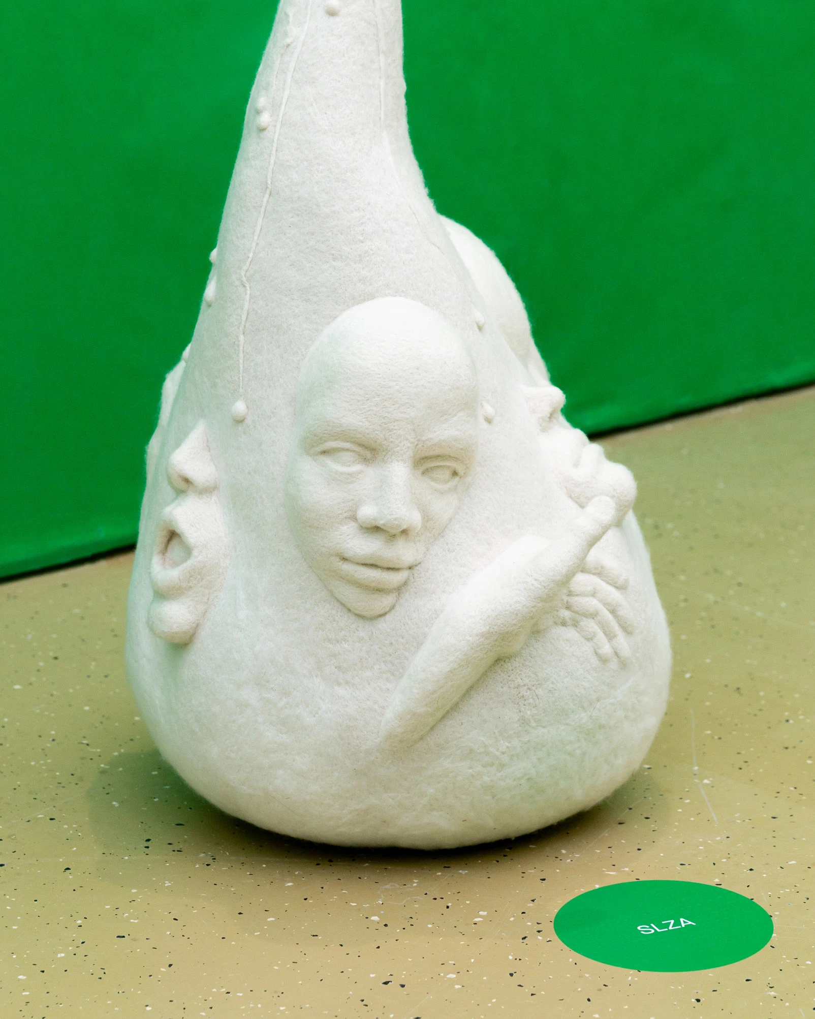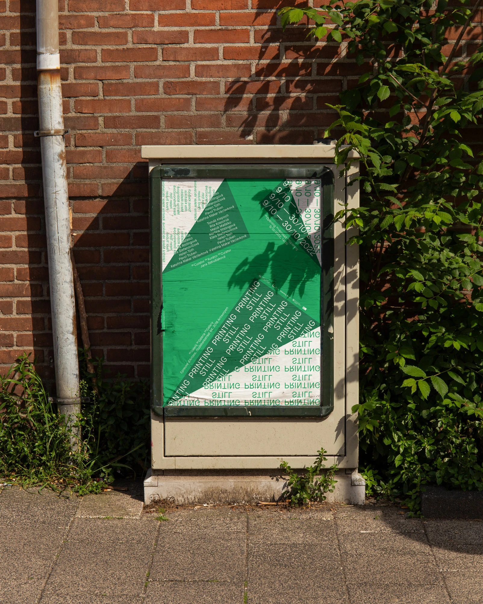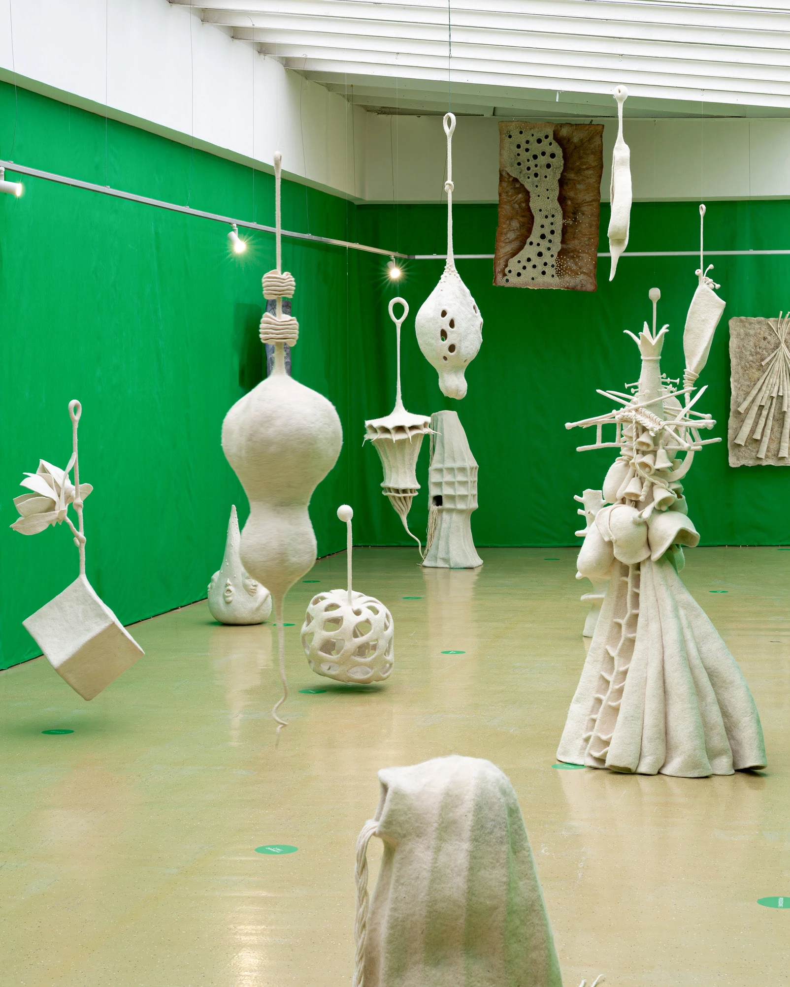 Výstavnú architektúru definuje výrazná zelená farba ktorá sa objavuje v rôznych materiáloch ako povrch stien textilné panely alebo papier a vytvára kontrastné pozadie k prevažne chromatickým dielam. Prvá časť výstavy pracuje s textilnými stenami medzi ktorými sú voľne inštalované objekty zavesené alebo položené. Nasleduje sekcia s radom panelov zoradených za sebou pričom každý ukrýva inú formu prezentácie ako je lupa zrkadlo malý detail alebo veľká fotografia. Posledná časť je definovaná stenou pred ktorou sú predsadené fotografie. Grafika výstavy využíva rovnakú zelenú a pomocou bieleho rastra a šumu vizuálne zjednocuje jednotlivé diela.