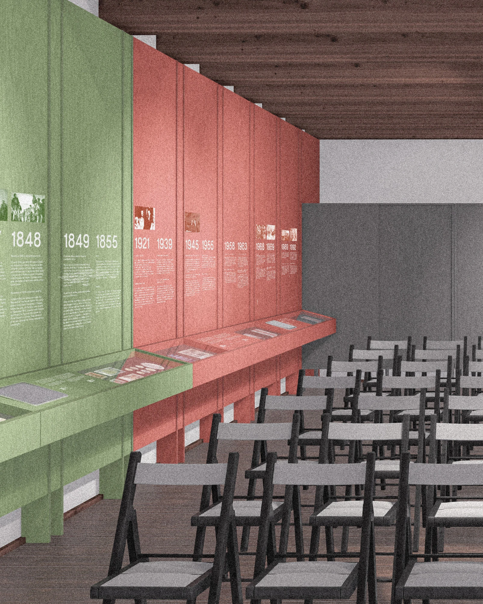 Súťažný architektonický návrh pre Turčianske múzeum v Trenčíne prezentuje život dvoch slovneskyćh osobností. Výstava prepája historický interiér so súčasným dizajnom cez modulárnu preglejkovú konštrukciu, farebné zóny a flexibilné prvky pre prezentáciu aj vzdelávanie.