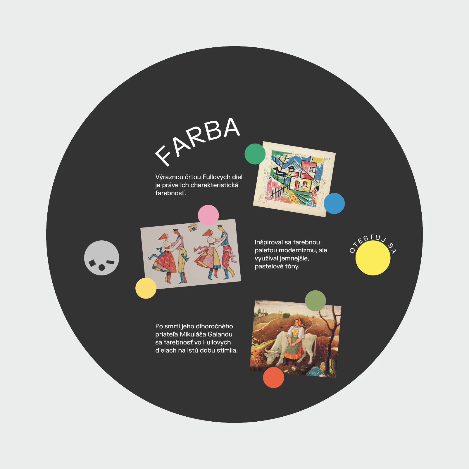 Výstava pozostáva z troch tém DOM, DAV a FU GA. DOM odhaľuje Galandovo osobné zázemie spomienky bolesť návraty formovanie jeho prvej grafiky. DAV prezentuje angažovanú tvorbu pre ľavicový časopis vizuálnu kritiku spoločenských pomerov. FU GA predstavuje partnerstvo s Fullom typografiu elementarizmus organickú abstrakciu a poetický vizuálny jazyk.