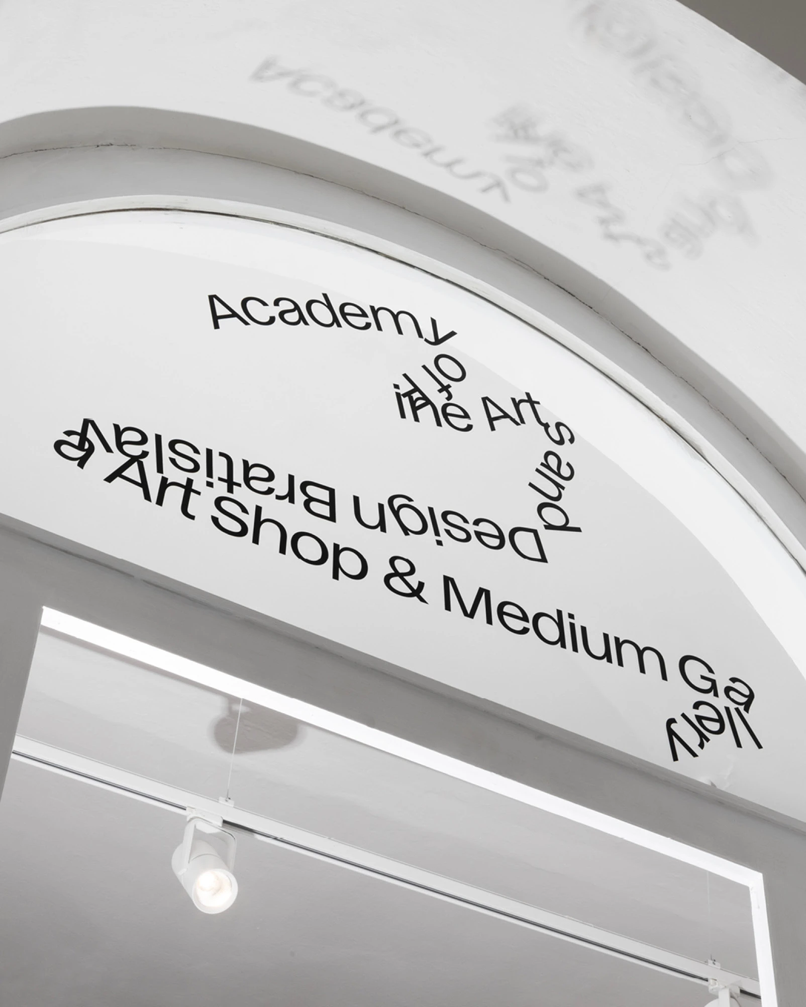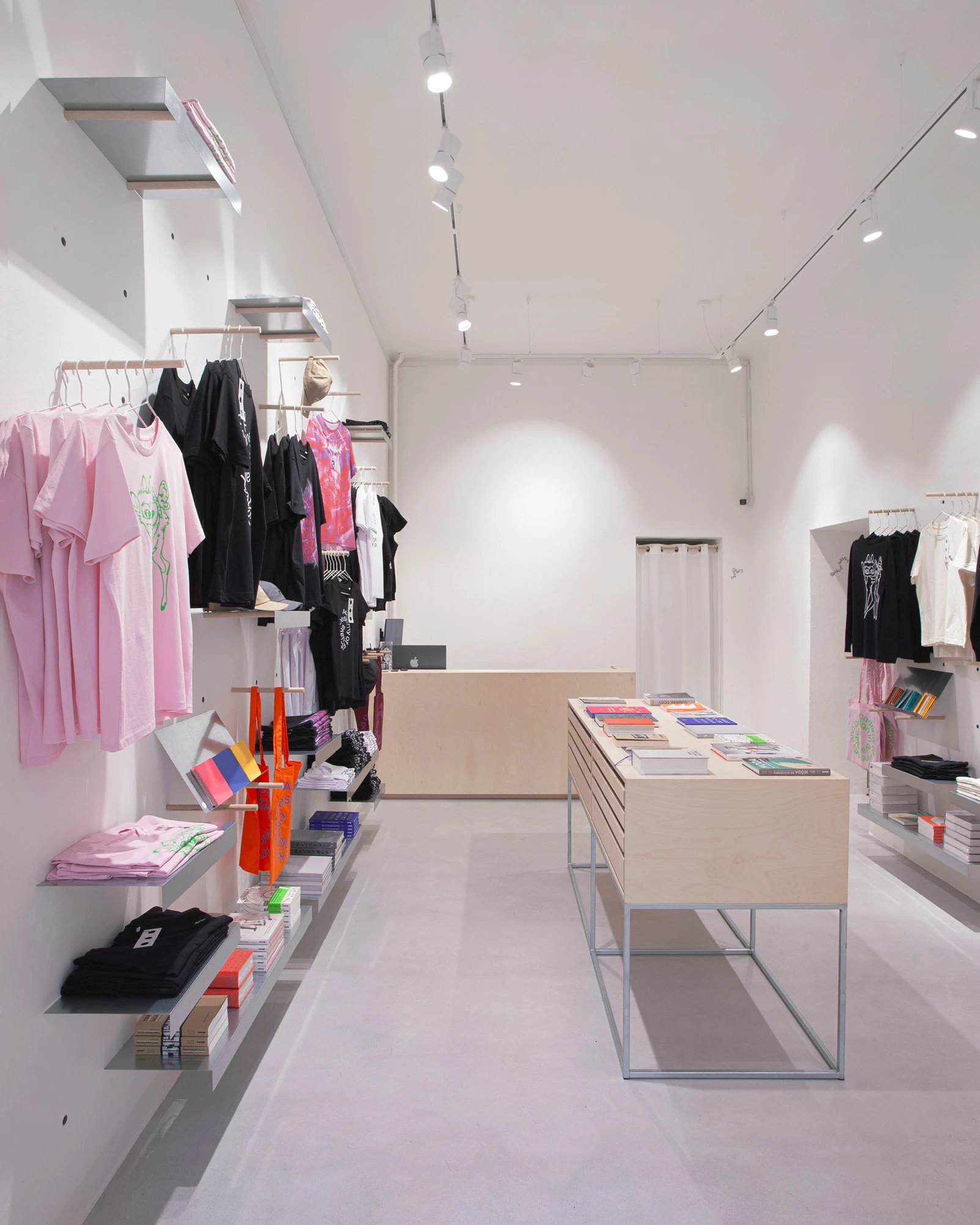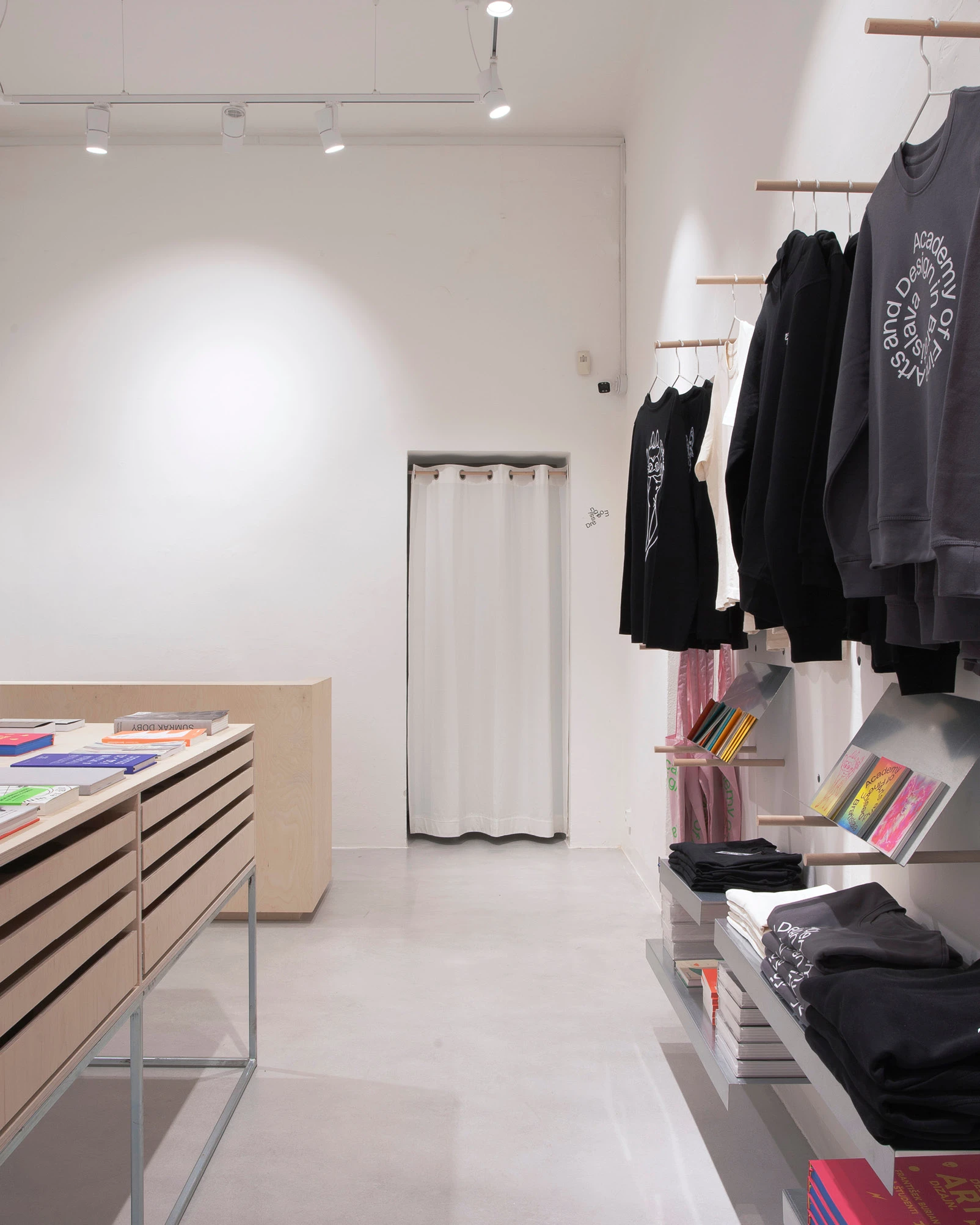 Architektúra a realizácia artshopu pre Vysokú školu výtvarných umení v Bratislave. Univerzálny priestor s modulovým systémom a stredovým pultom umožňuje variabilné usporiadanie objektov.