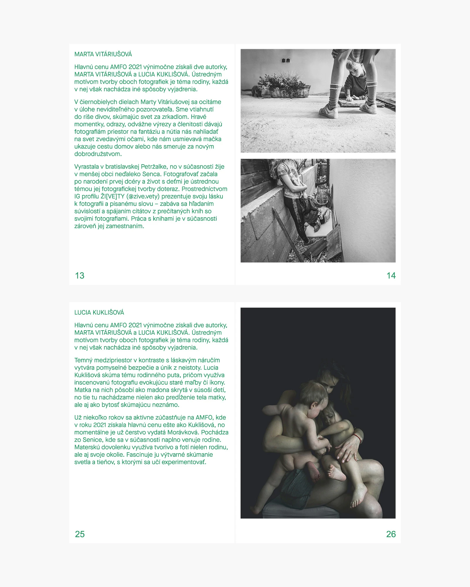 Výstava predstavuje víťazky dvoch celoštátnych súťaží Výtvarné spektrum a AMFO. Eva Pokorná zaujala plstenými objektmi inšpirovanými prírodou, Marta Vitáriušová ponúka čiernobiele fotografie, ktoré nás vtiahnu do sveta fantázie, a Lucia Kuklišová skúma rodinné puto cez inscenovanú fotografiu.