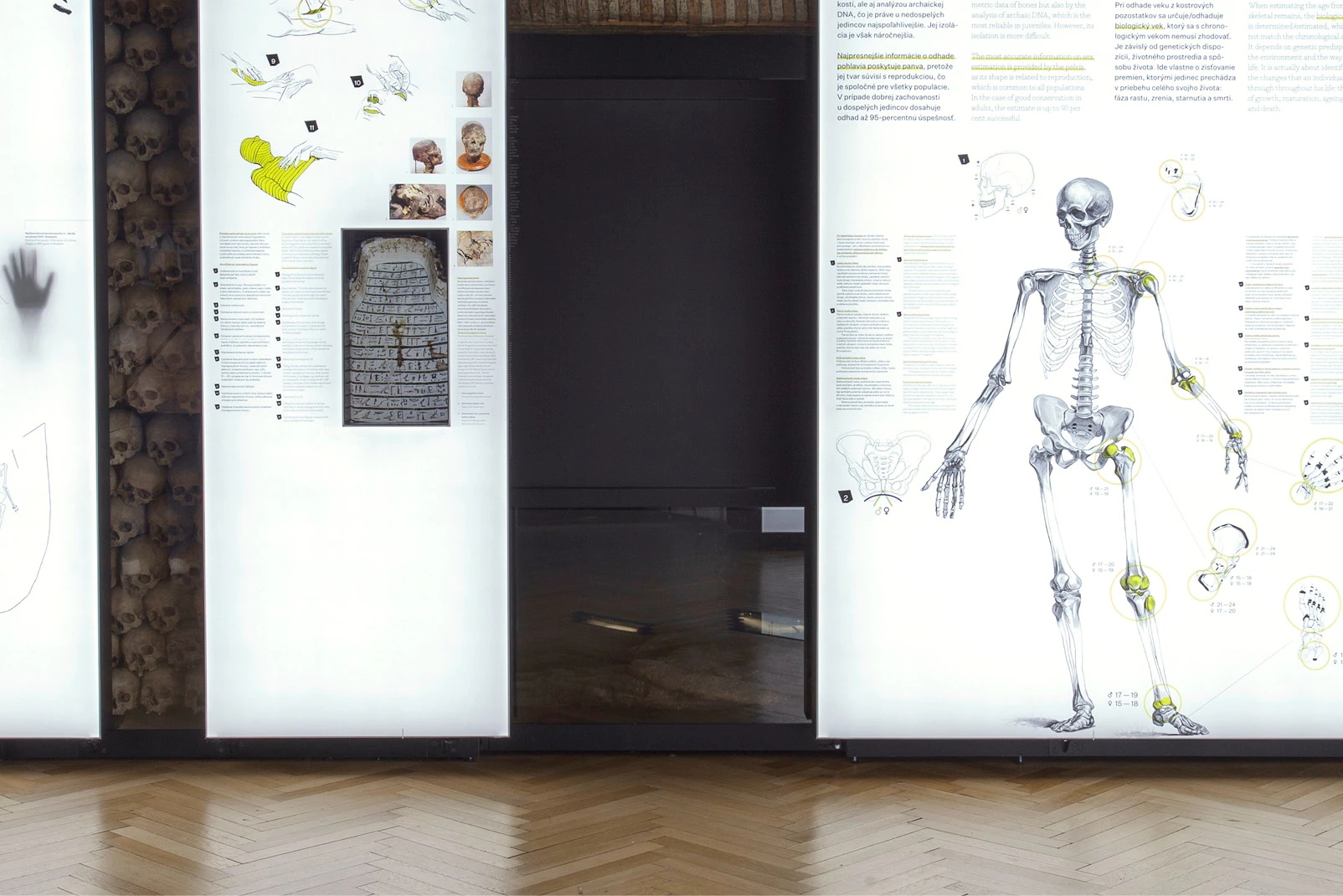Architektúra, vizuál a realizácia antropologickej expozície pre Slovenské národné múzeum. Expozícia inšpirovaná jaskyňou kombinuje svetelné panely, ilustrácie, typografiu a interaktívne prvky.