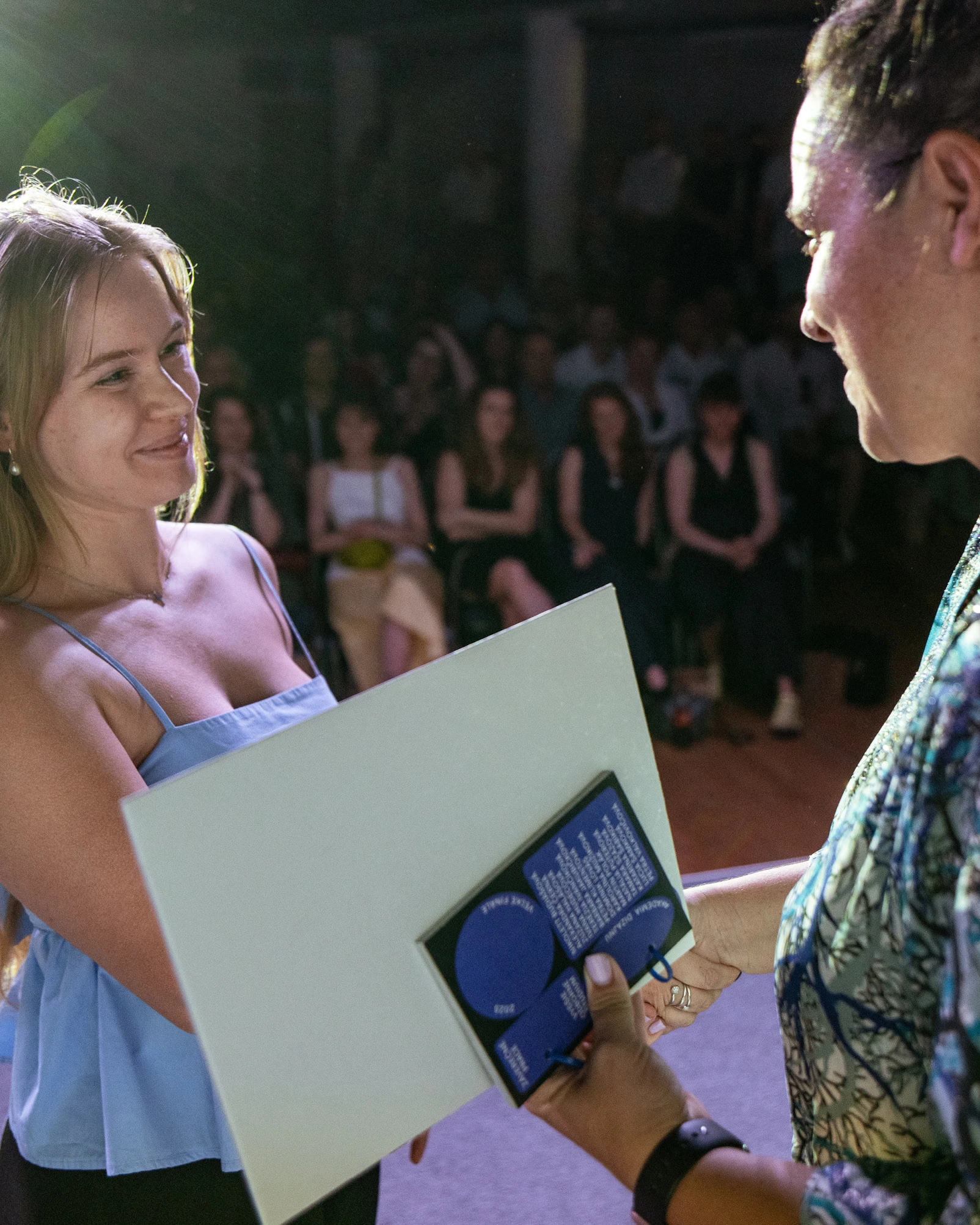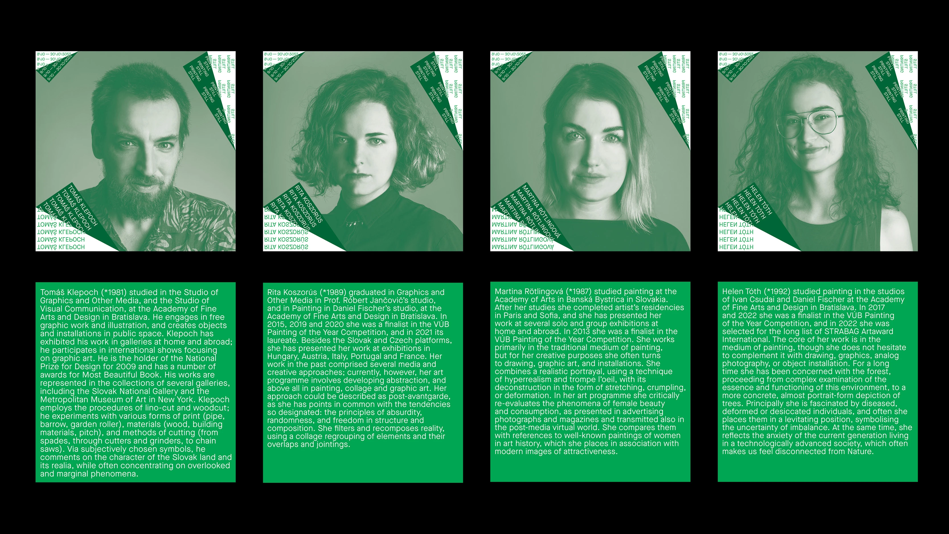Výstava predstavuje víťazky dvoch celoštátnych súťaží Výtvarné spektrum a AMFO. Eva Pokorná zaujala plstenými objektmi inšpirovanými prírodou, Marta Vitáriušová ponúka čiernobiele fotografie, ktoré nás vtiahnu do sveta fantázie, a Lucia Kuklišová skúma rodinné puto cez inscenovanú fotografiu.