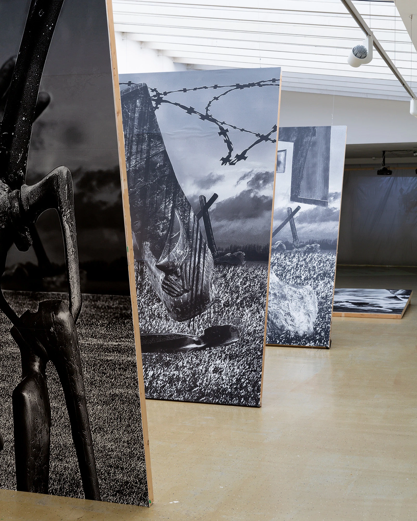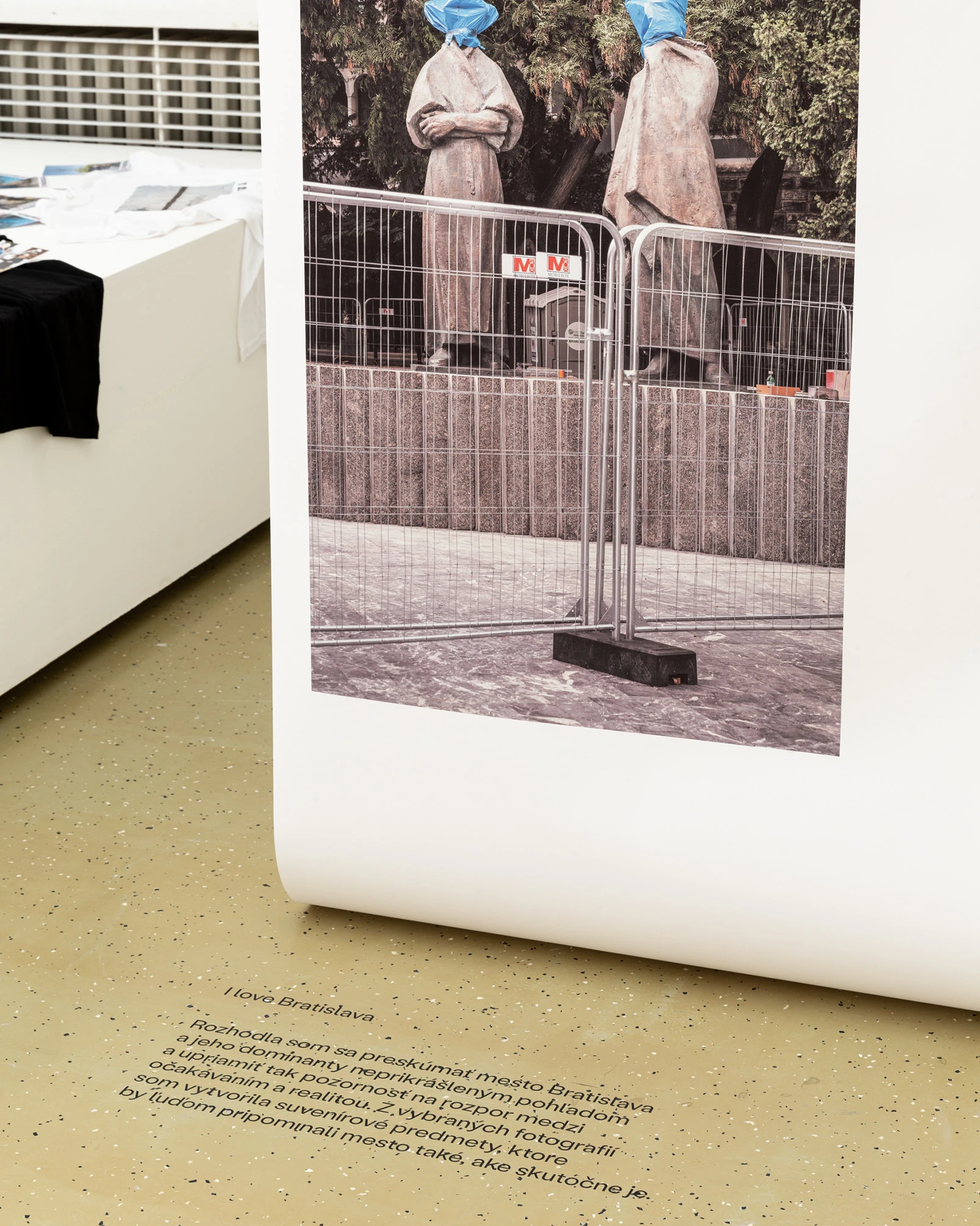 Architektúra, vizuál a realizácia fotografickej výstavy v galérii Médium. Fotografie sú vystavené v priestore bez stien, v hliníkových konštrukciách s fóliou ako metaforou klamu, čo umožňuje hru s inštaláciou.