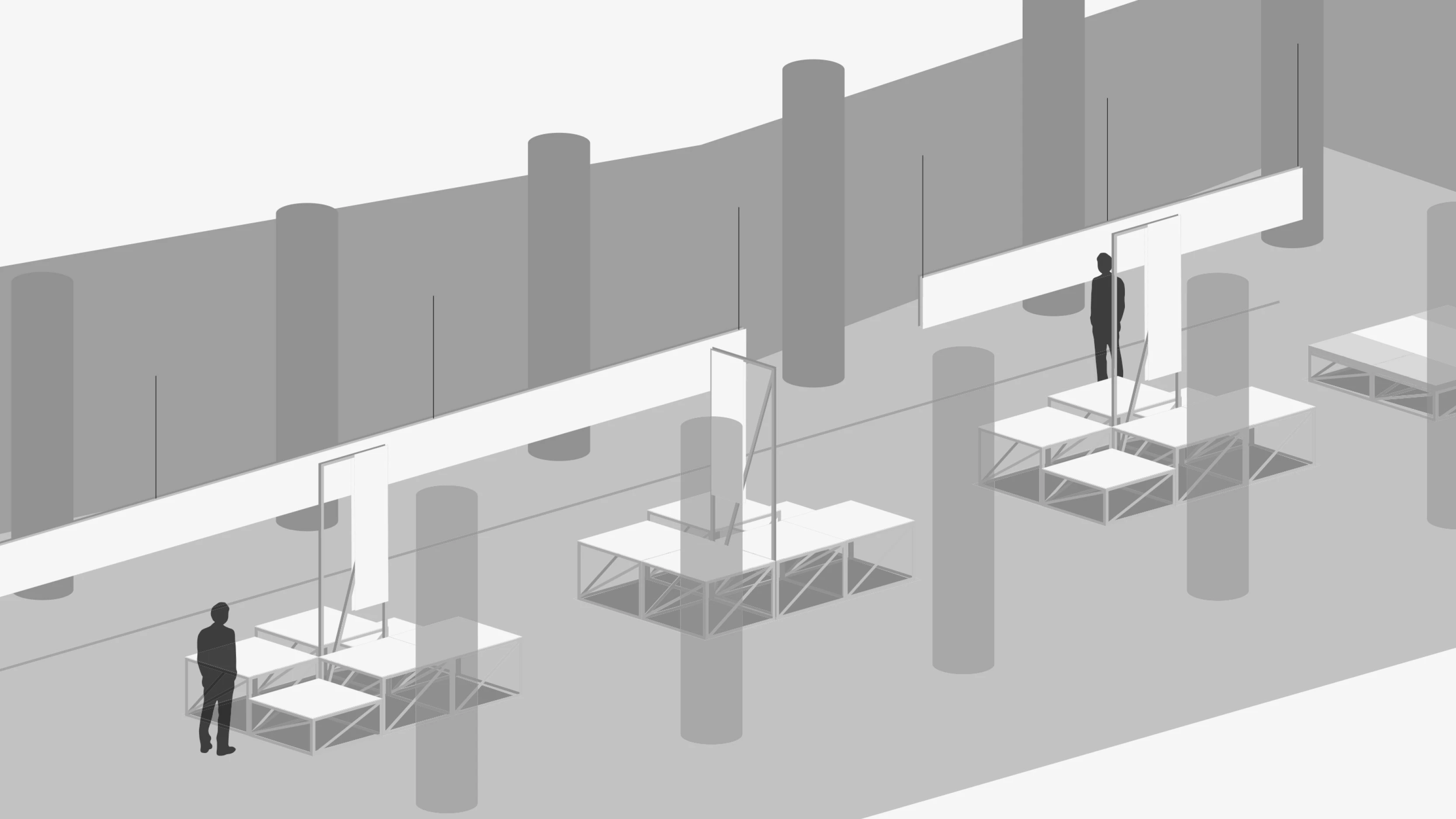 Architektúra a realizácia výstavy pre výtvarníčku Radostinu Doganovú. Výstava pripomína pole obrazov na drevených konštrukciách, ktorých vychýlené línie vytvárajú jemné, dynamické priehľady.