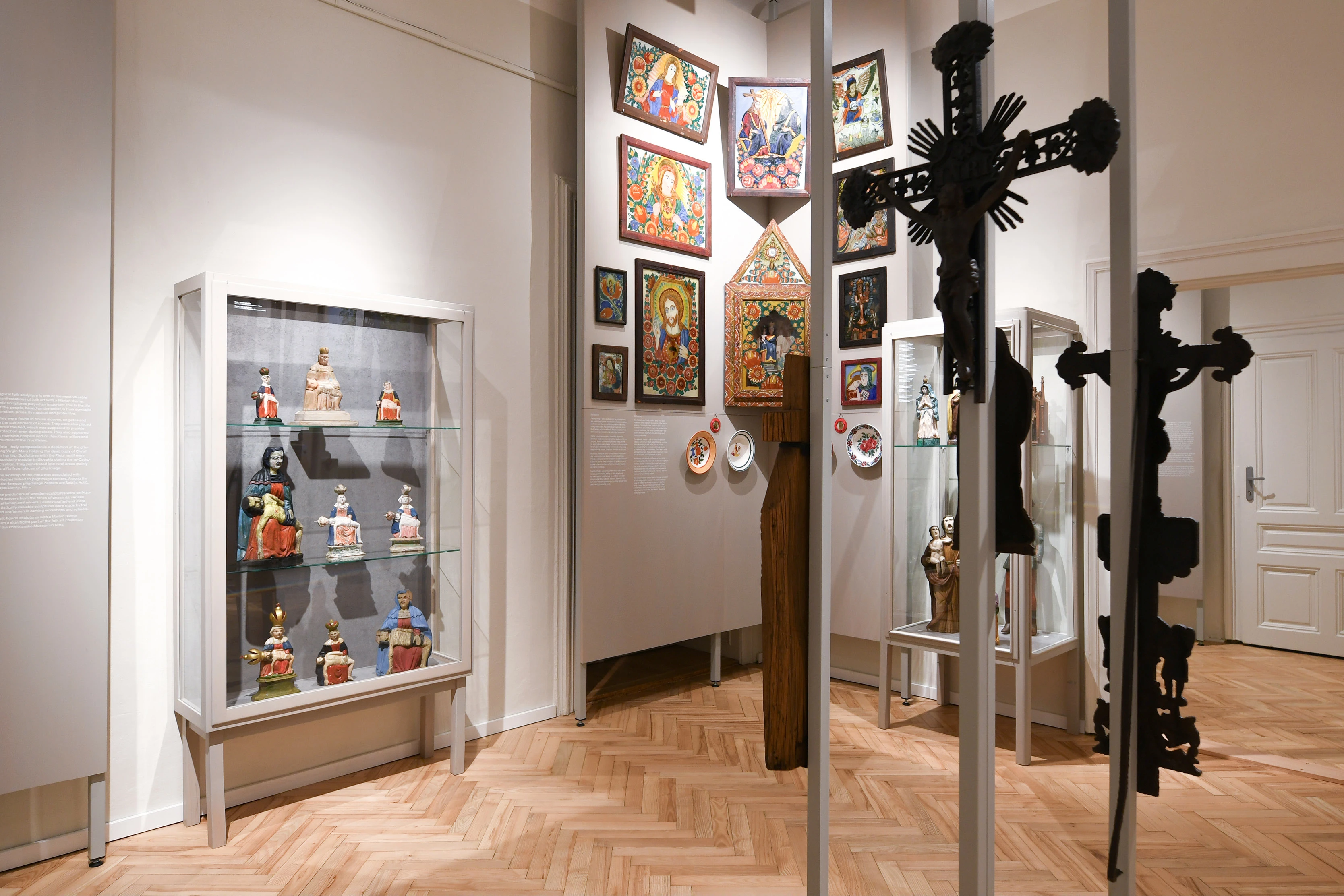 Výstava predstavuje duchovný svet vidieckeho človeka rímskokatolíckeho vierovyznania na konci 19. storočia, so zameraním na mariánsky kult a malé sakrálne objekty. Exponáty z Ponitrianskeho múzea a súkromných zbierok odhaľujú ľudové sakrálne plastiky, maľby a devocionálie, ktoré dokumentujú náboženský život a tradície z regiónu povodia Drevenice.