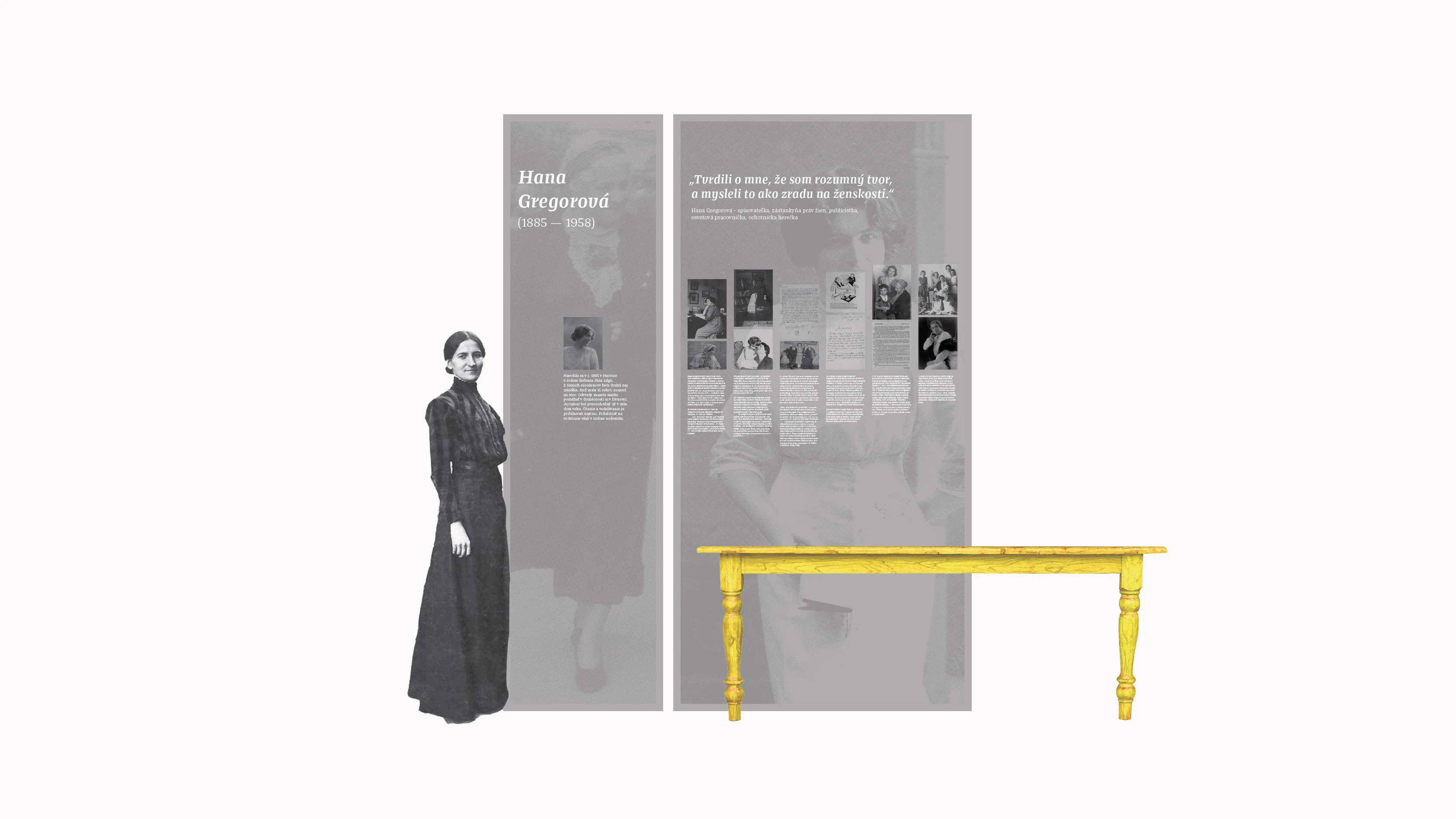Architektúra a grafický dizajn výstavy, ktorá rozpráva príbehy inteligentných a uvedomelých žien, usilujúcich sa od konca 19. do polovice 20. storočia zmeniť zmýšľanie konzervatívnej a patriarchálnej spoločnosti v prospech ženských práv.