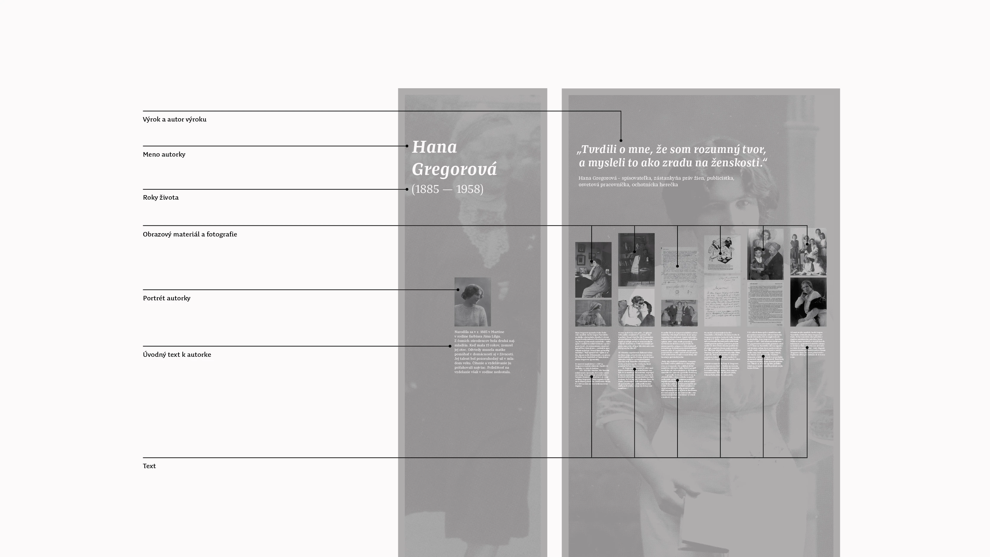 Výstava približuje životy a tvorbu šiestich žien, spisovateliek a autoriek, z obdobia prelomu 19. a 20. storočia – Eleny Maróthy Šoltésovej, Terézie Vansovej, Ľudmily Podjavorinskej, Boženy Slančíkovej Timravy, Hany Gregorovej a Ľudmily Groeblovej. Svojimi aktivitami búrali rodové stereotypy a predsudky o ženách a ženstve a zaslúžili sa o zlepšujúce sa postavenie žien v Československu.