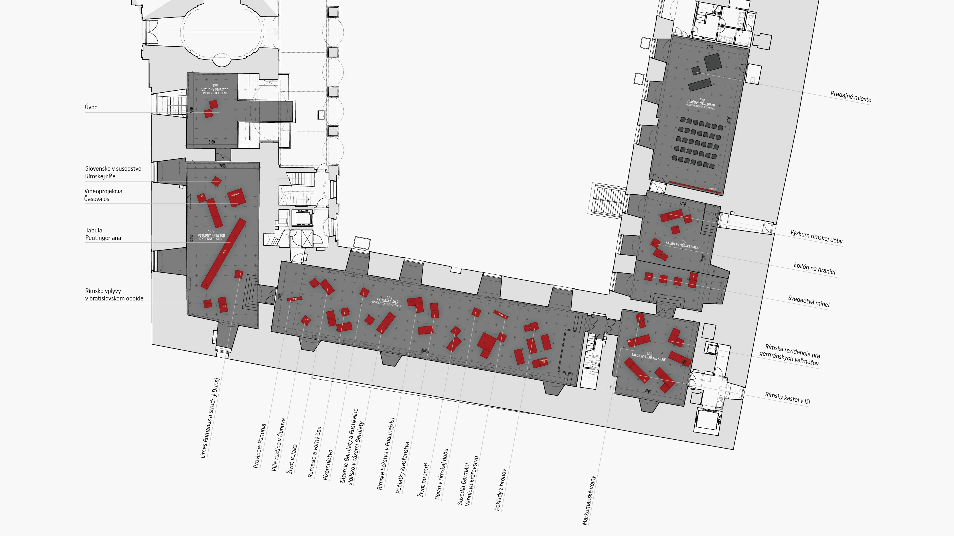 Architektúra a vizuál prezentujú stret rímskej a germánskej kultúry prostredníctvom výstavy na Bratislavskom hrade. Výstavný mobiliár v podobe transportných debien odkazuje na dočasnosť expozície a zbierkový charakter exponátov.