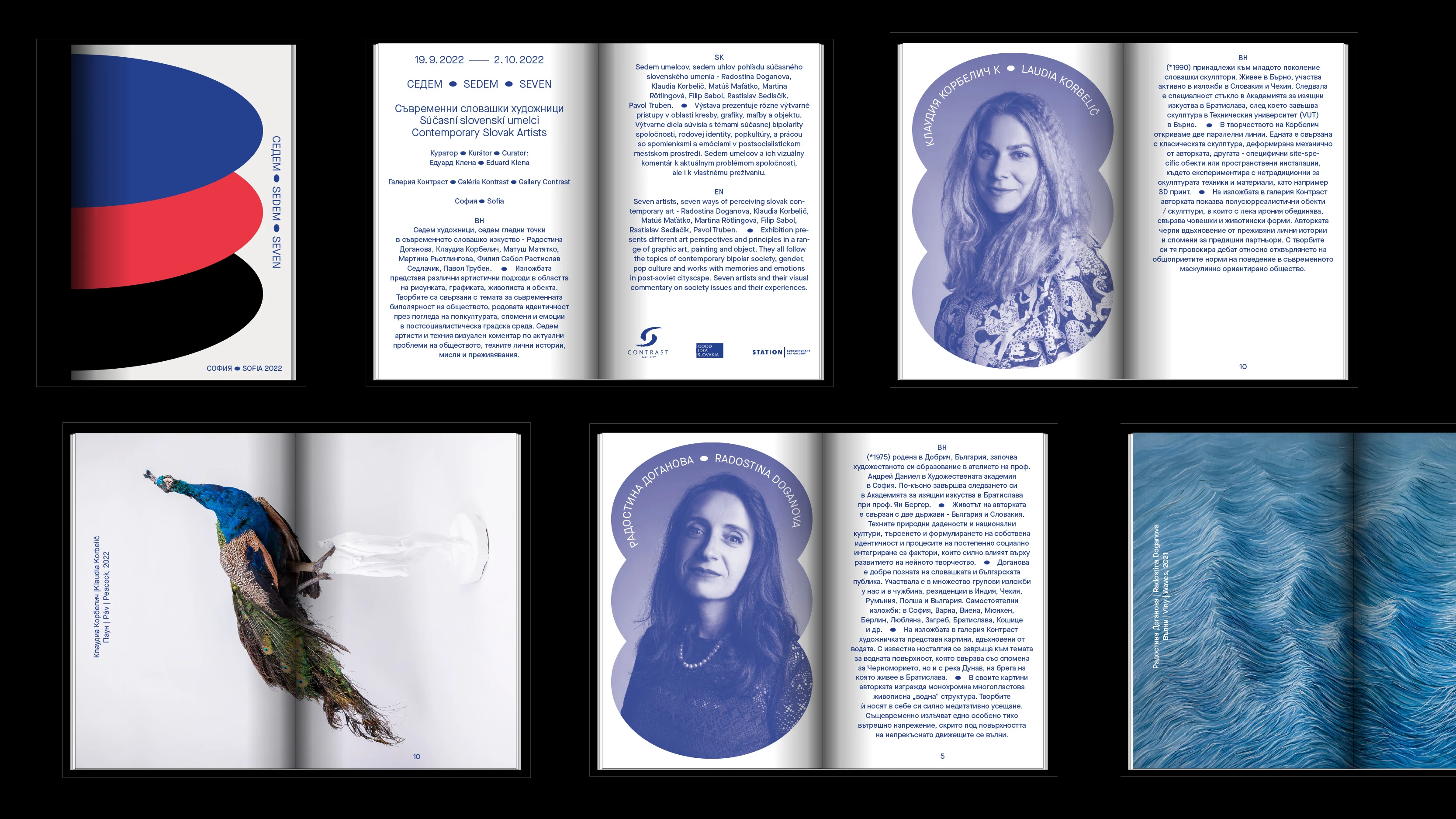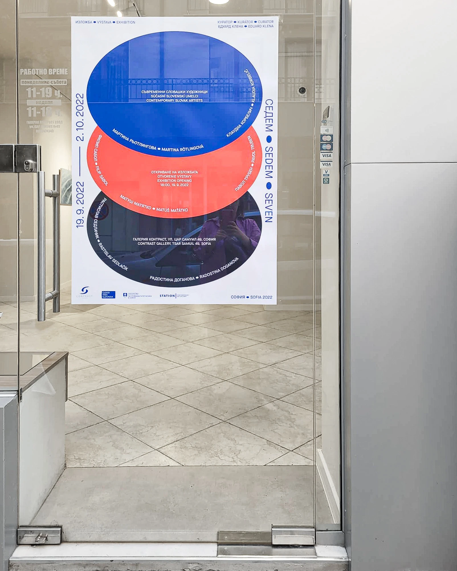 Vizuál výstavy v Sofii propaguje sedem súčasných slovenských umelcov. Grafika využíva prekrývajúce sa elipsy a trikolóru, čím spája Slovensko a Bulharsko a zdôrazňuje medzinárodný charakter.