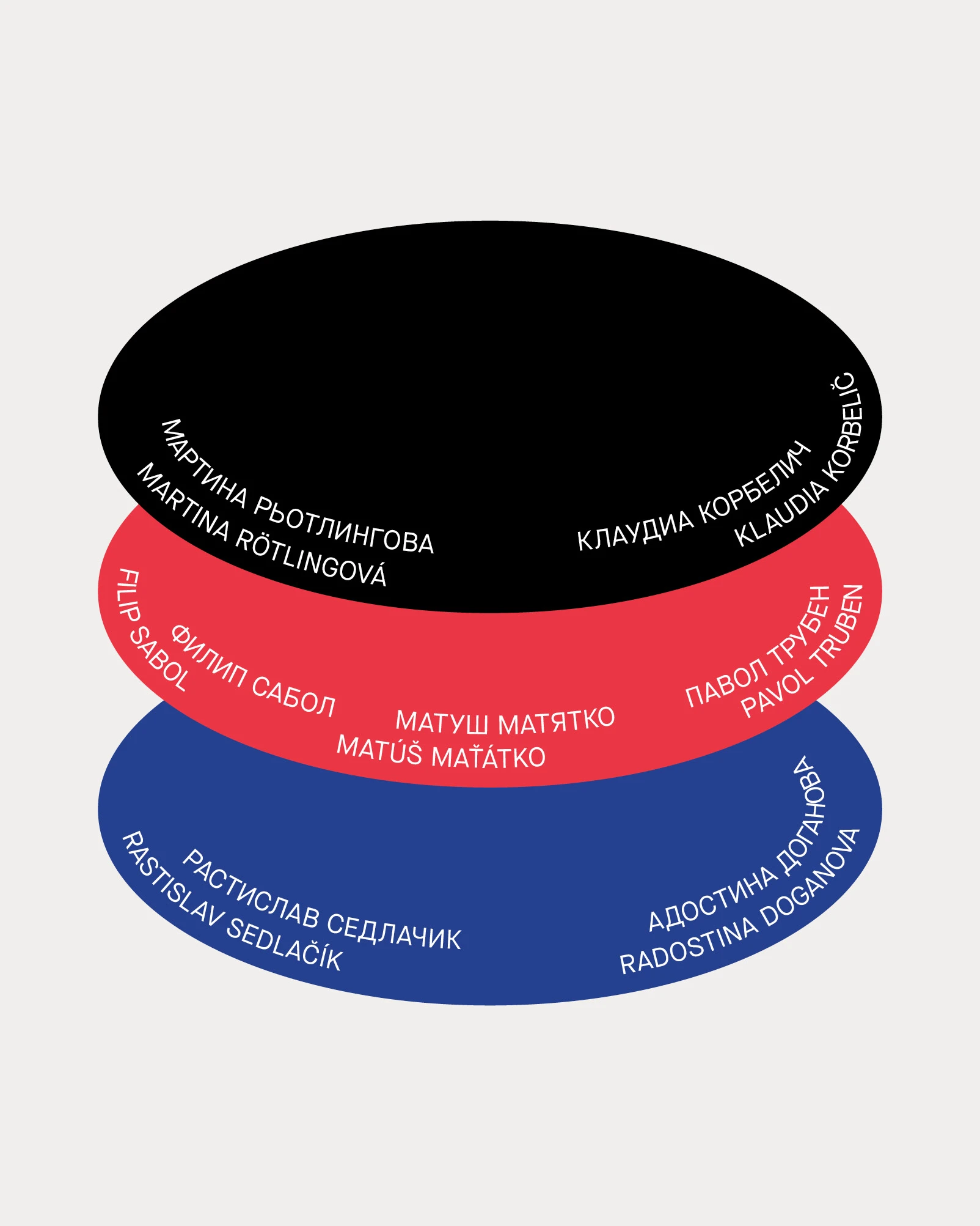 Grafický dizajn plagátu pracuje s motívom prekrývajúcich sa farebných elíps, ktoré evokujú vlajku, pohyb aj symbolické vrstvenie kultúrnych identít. Použitá trikolóra (modrá, červená, čierna) vizuálne prepája Slovensko a Bulharsko, čím reflektuje medzinárodný charakter výstavy. Moderné geometrické riešenie podporuje čitateľnosť a zároveň vytvára dynamickú kompozíciu, ktorá korešponduje s rozmanitosťou umeleckých prístupov prezentovaných autorov.