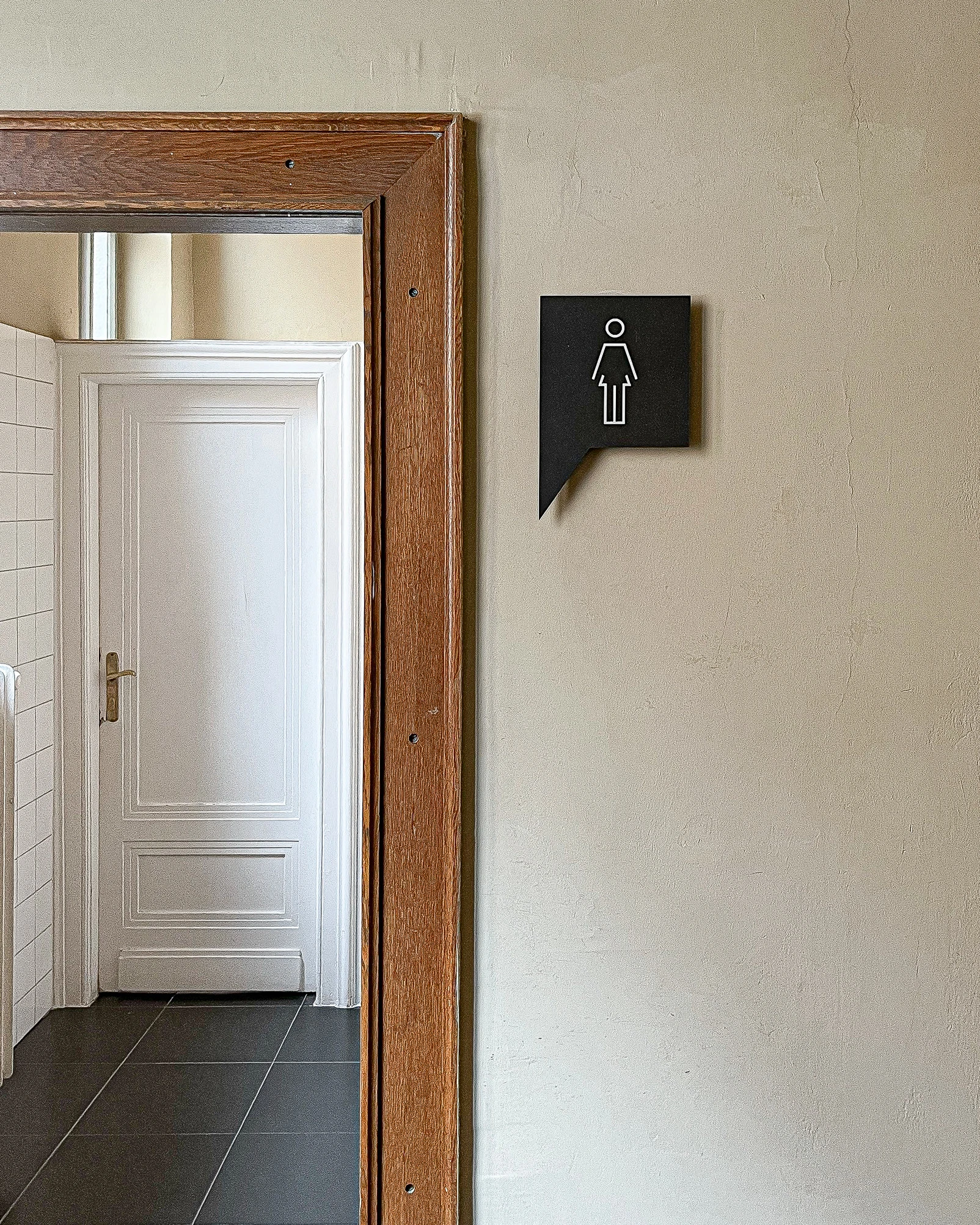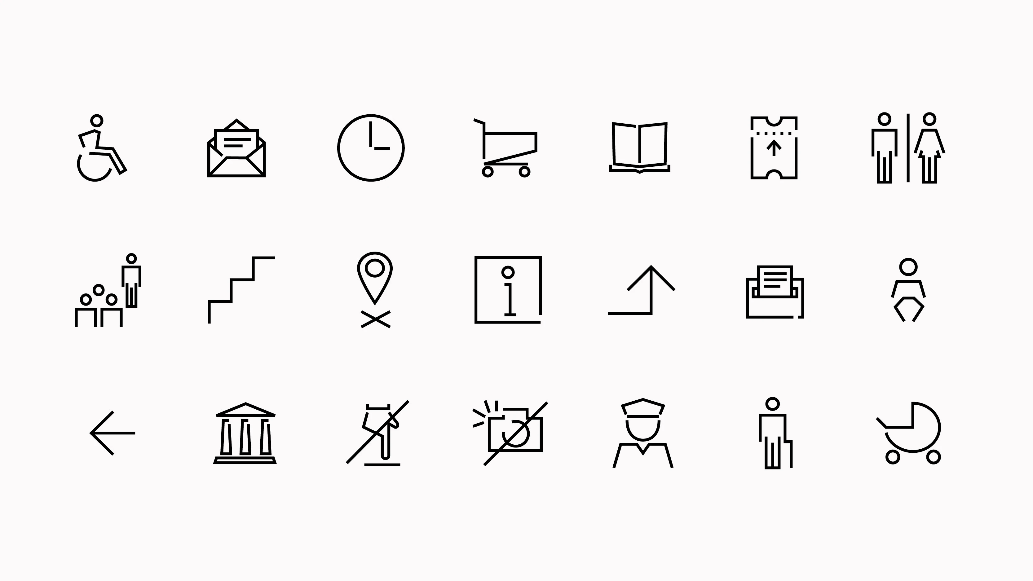 Dizajn informačno navygačného systému kotrý využíva vertikálne panely s grafickými motívmi prírody, čím spája navigáciu s príbehom priestoru.