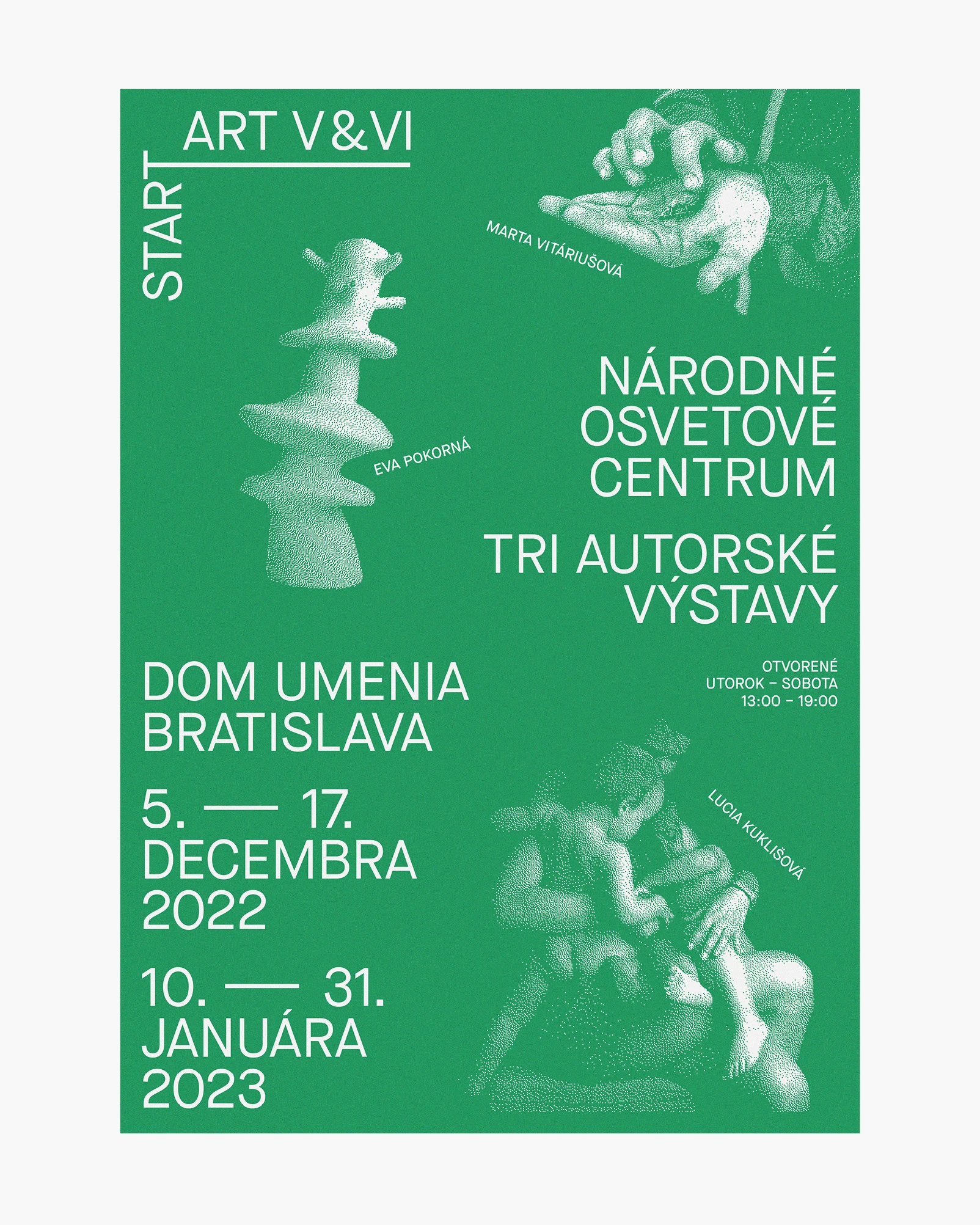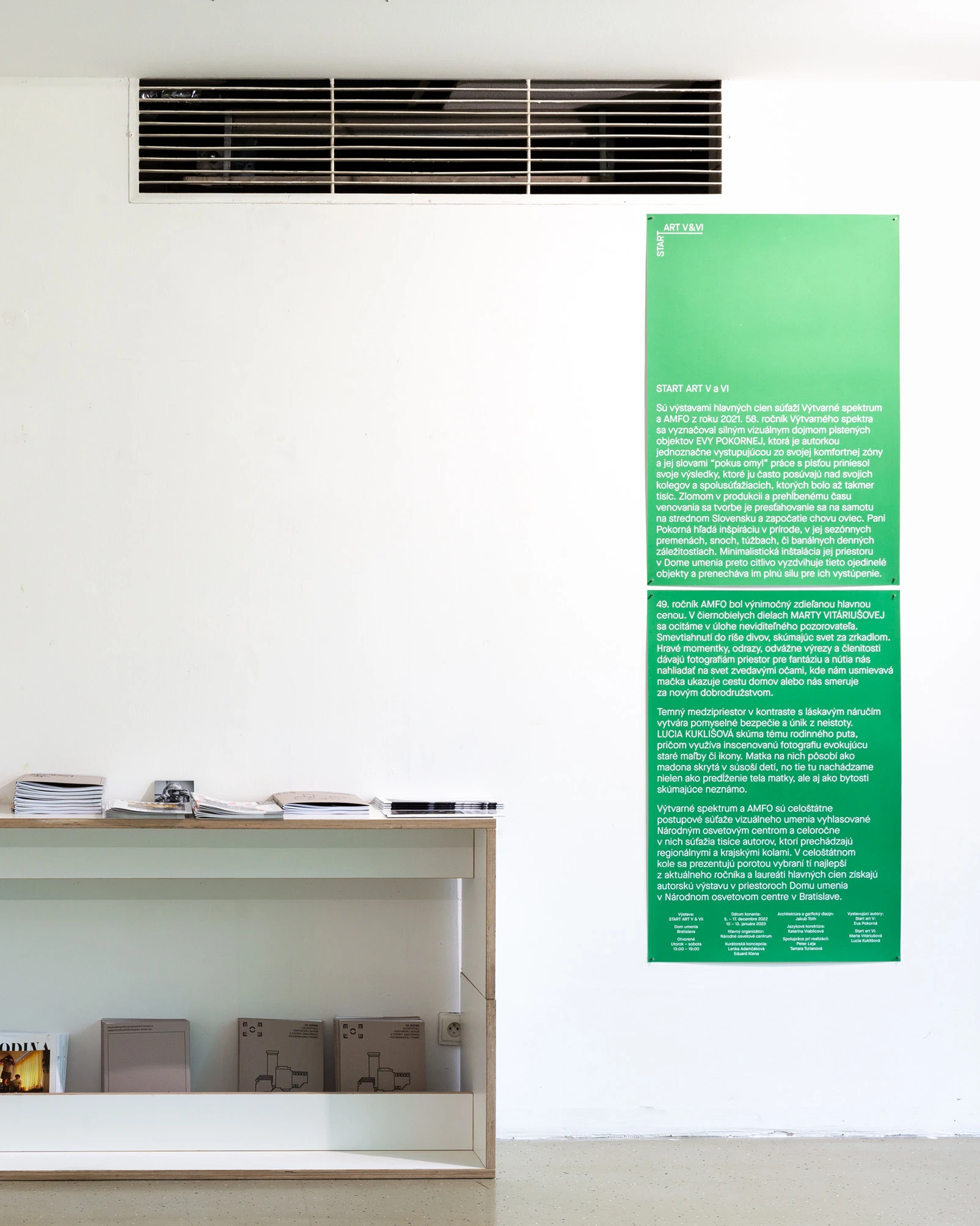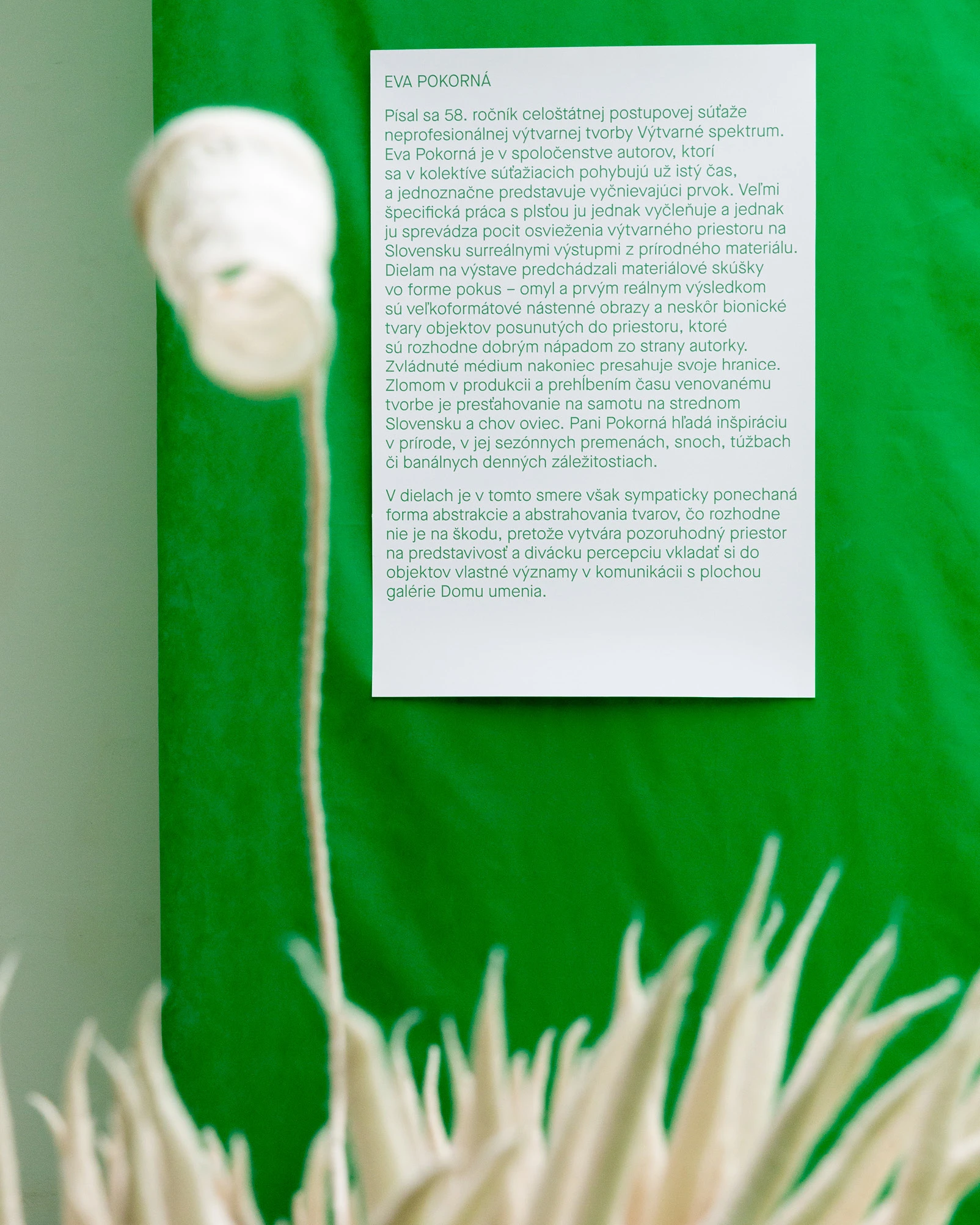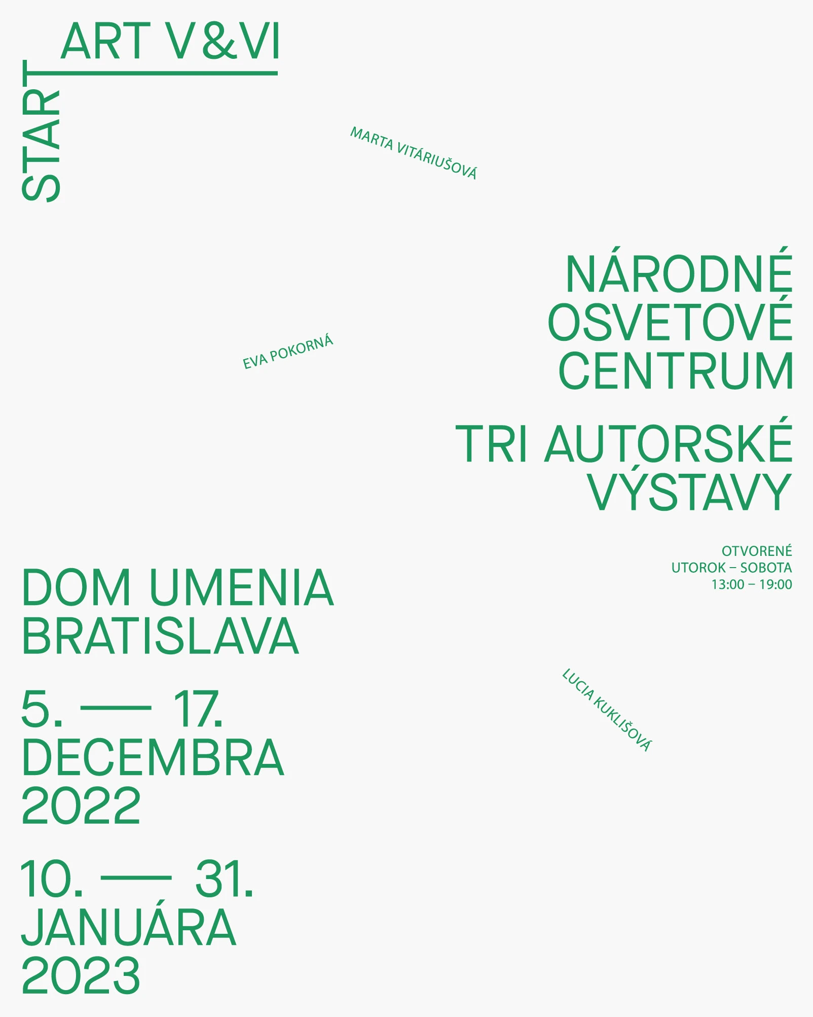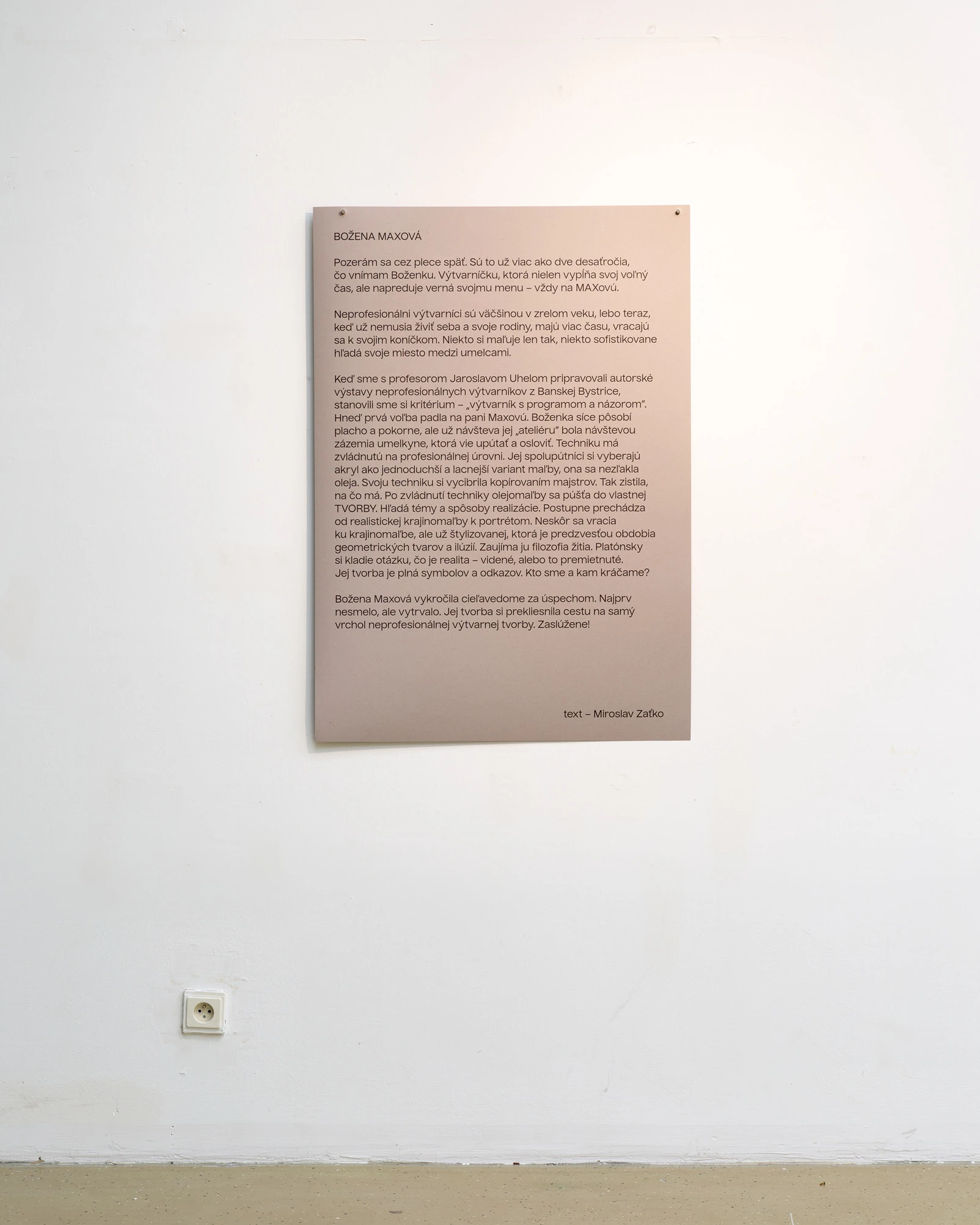 Architektúra a realizácia výstavy z cyklu výstav amatérskych umelcov v Národnom osvetovom centre. Architektúra pracuje s výraznou zelenou farbou a vrstvením prezentácií, ktoré vytvárajú kontrastné pozadie a vizuálne zjednotený celok.