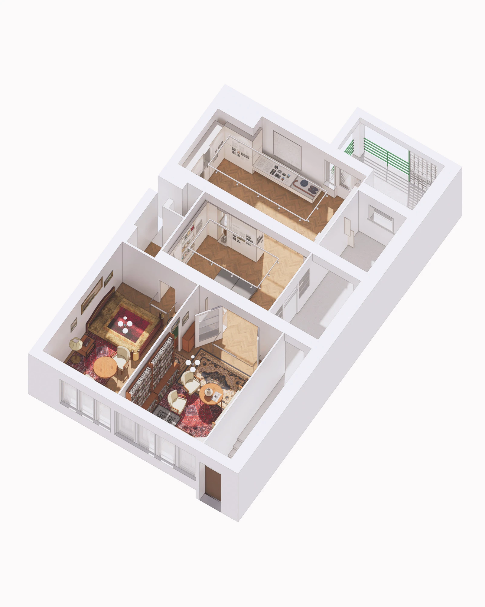 Súťažný architektonický návrh pre Turčianske múzeum v Trenčíne prezentuje život dvoch slovneskyćh osobností. Výstava prepája historický interiér so súčasným dizajnom cez modulárnu preglejkovú konštrukciu, farebné zóny a flexibilné prvky pre prezentáciu aj vzdelávanie.